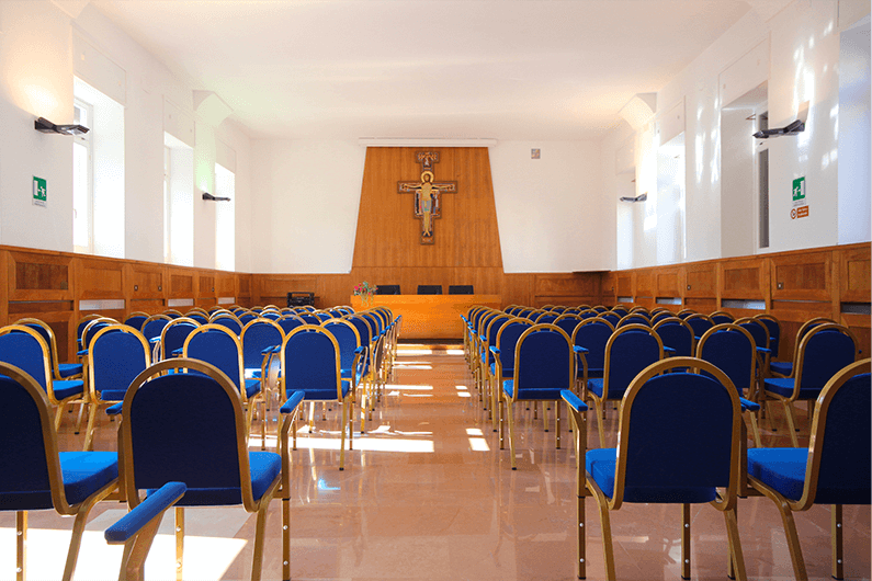 The Sacred Heart Oasis was established in 1933 by Father Agostino Gemelli and Armida Barelli, founders of the Catholic University. The facility, nestled in greenery, is located just a short distance from San Damiano and the Basilica of Santa Chiara in Assisi.